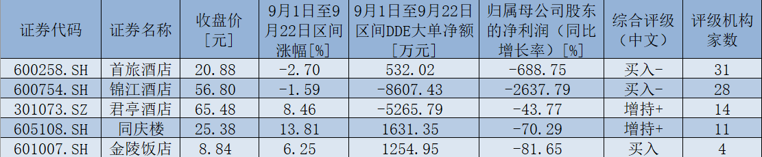 表:最近30日內(nèi),酒店及餐飲板塊獲機構(gòu)給予“買入”或“增持”等看好評級個股一覽