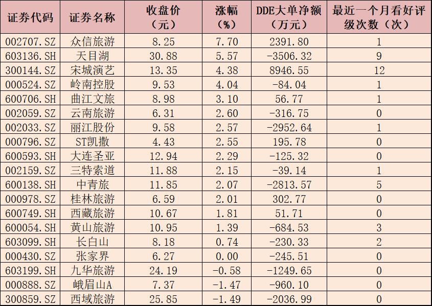 表:11月2日旅游及景區(qū)行業(yè)股股價(jià)表現(xiàn)一覽