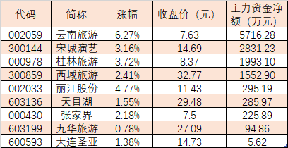 表:12月6日受到主力資金追捧的景點(diǎn)及旅游概念股