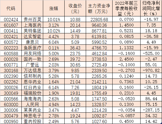 與此同時(shí),互聯(lián)網(wǎng)醫(yī)療概念股也獲市場(chǎng)主力資金的青睞。12月12日,板塊內(nèi)有37只概念股呈現(xiàn)主力資金凈流入態(tài)勢(shì),合計(jì)凈流入額達(dá)9.30億元。其中,貴州百靈獲主力資金凈買入額最多,為22805.68萬(wàn)元,上海醫(yī)藥、英特集團(tuán)、達(dá)實(shí)智能、康恩貝等4只概念股獲主力資金凈買入額也均超5000萬(wàn)元。