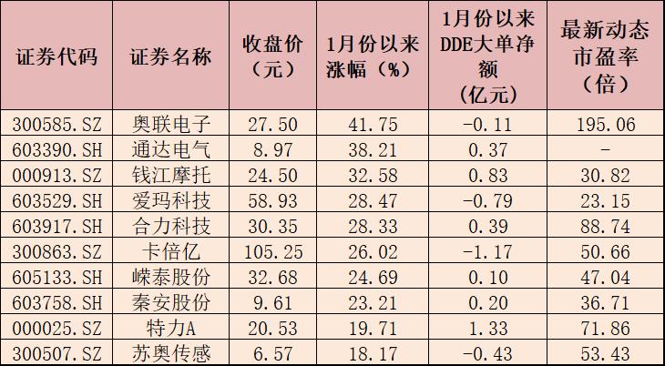 表:1月份以來(lái)漲幅前10的汽車(chē)行業(yè)股一覽