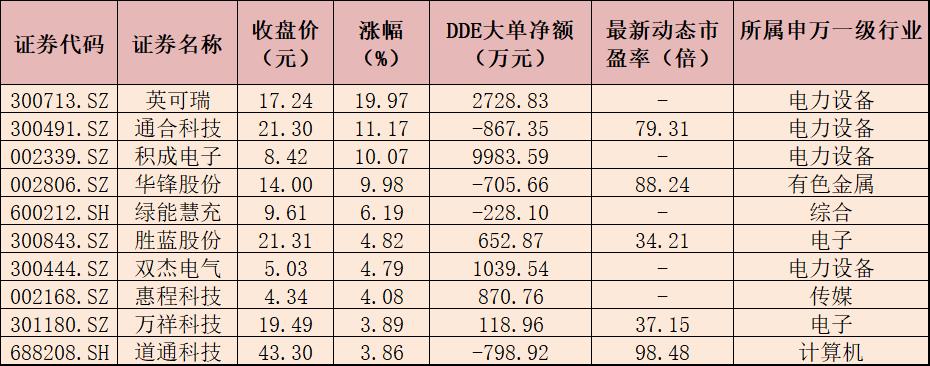 表:2月6日高壓快充板塊內(nèi)漲幅居前十的個股一覽