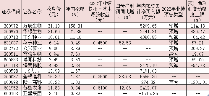 事實(shí)上,種業(yè)板塊上市公司去年業(yè)績(jī)改善明顯。同花順數(shù)據(jù)顯示,截至3月20日收盤,已有14家種業(yè)板塊上市公司披露了2022年全年業(yè)績(jī)預(yù)告,8家公司業(yè)績(jī)預(yù)喜,占比近六成。其中,農(nóng)發(fā)種業(yè)、華綠生物、眾興菌業(yè)、敦煌種業(yè)、萬(wàn)辰生物等5家公司預(yù)計(jì)2022年全年歸母凈利潤(rùn)同比增幅上限均在100%及以上。