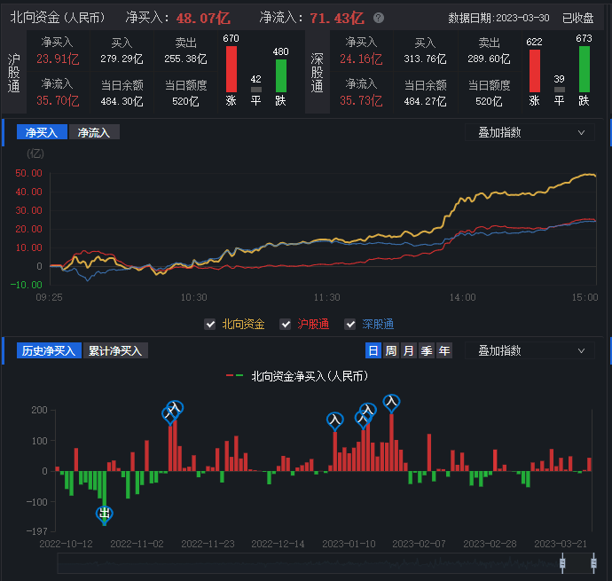 3月30日,兩市股指早盤震蕩回落,午后回升轉漲,創(chuàng)業(yè)板指震蕩上行。北向資金全天凈買入超40億元。業(yè)內人士表示,當前A股市場的各路機構資金有望形成合力做多的態(tài)勢。