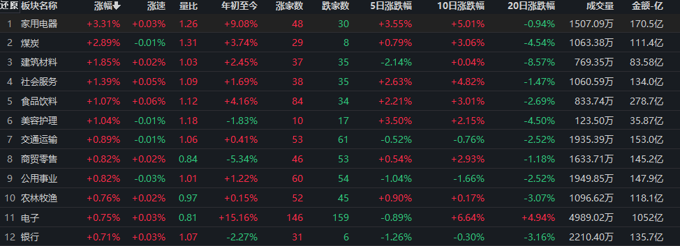 家用電器行業(yè)指數漲超3%