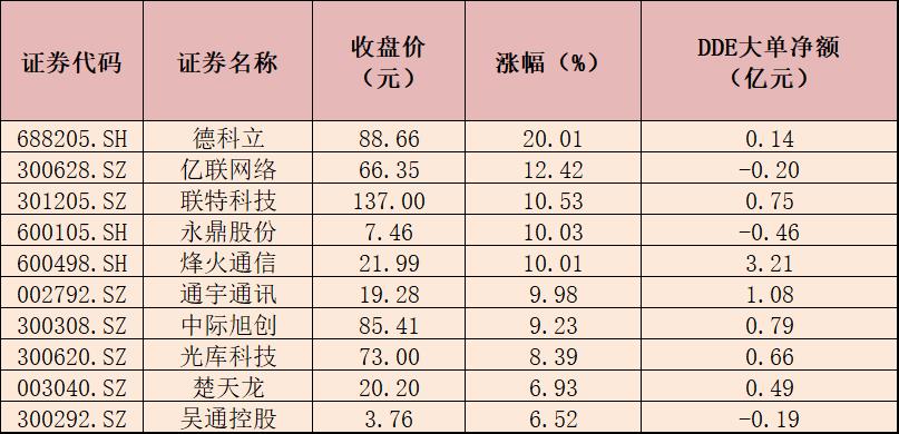 表:4月24日通信行業(yè)漲幅居前十的個(gè)股一覽