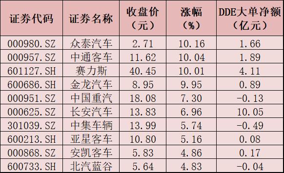 表:7月3日汽車整車板塊漲幅居前10的個(gè)股一覽