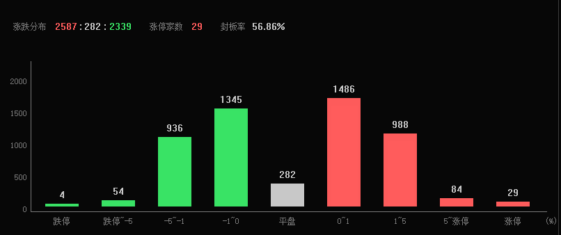 7月10日早盤,A股三大指數(shù)高開震蕩。截至上午11:30,上證指數(shù)漲0.17%,報(bào)3202.06點(diǎn),深證成指和創(chuàng)業(yè)板指漲幅分別為0.60%和1.58%;滬深兩市成交額合計(jì)4986億元??傮w來看,A股市場(chǎng)個(gè)股漲多跌少,有3587只上漲,2339只下跌,漲跌停方面,有29只個(gè)股漲停,跌停股4只。