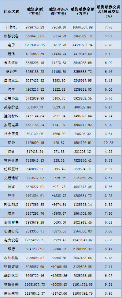 表:7月11日申萬一級行業(yè)兩融交易情況