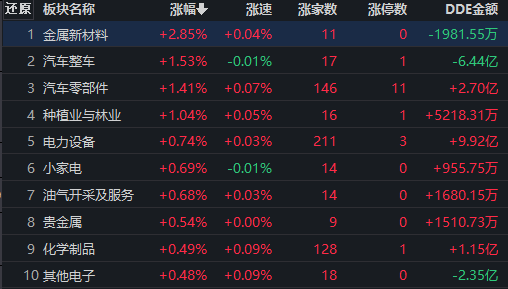 從早盤表現強勢的金屬新材料行業(yè)看,交易中的26只成份股中,有11只上漲,其中,有2只個股漲幅超5%。資金方面,有1981.55萬元大單資金凈流出該行業(yè)。