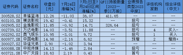 表:7月1日至7月24日,影視院線板塊期間實(shí)現(xiàn)上漲個(gè)股一覽
