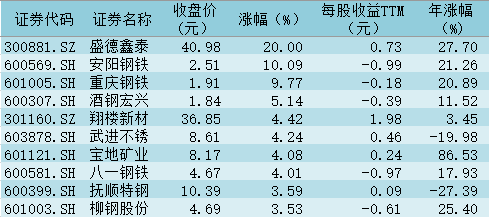 表:今日鋼鐵板塊漲幅前十個(gè)股一覽