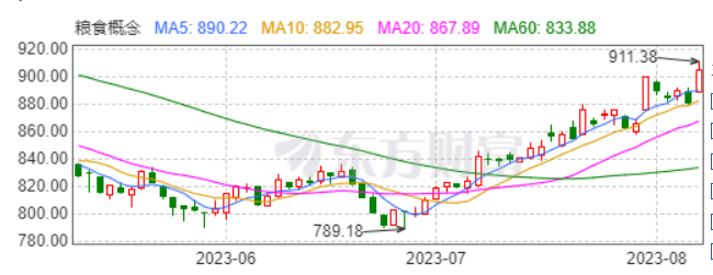 糧食概念板塊走勢氣勢如虹(供圖:東方財(cái)富)