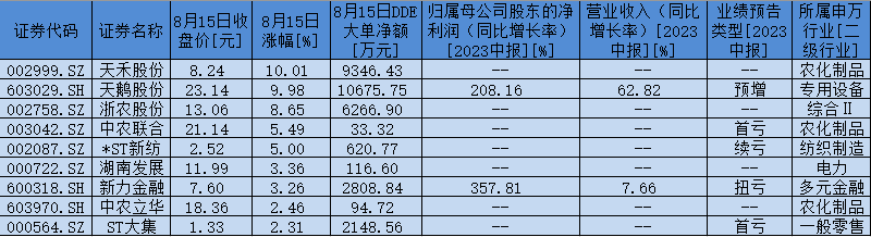 表:8月15日,同花順供銷社概念板塊漲幅超2%個股一覽