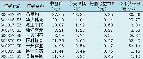 截至8月23日收盤,SPD指數(shù)漲0.52%,板塊內(nèi)漲幅居前的個(gè)股中,藥易購上漲13.85%,盤中一度20CM漲停;華人健康漲4.04%,盤中一度漲超10%。板塊內(nèi)21只個(gè)股中,共有9只收漲,占比超四成。