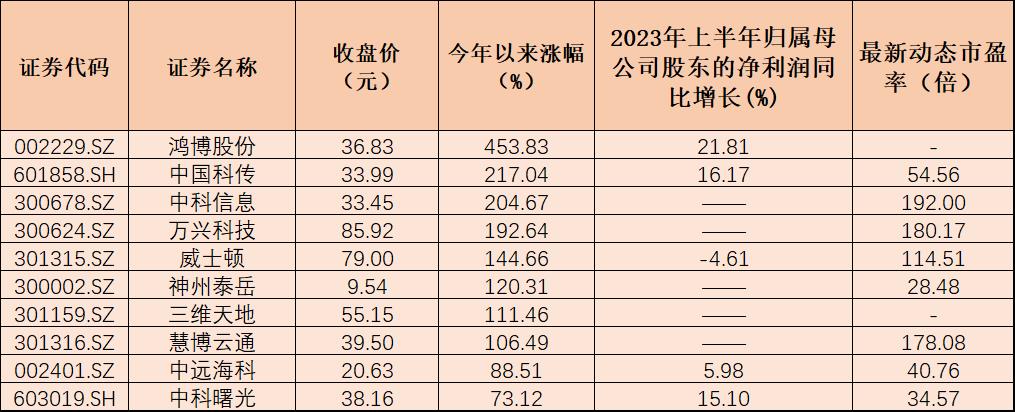 表:今年以來(lái)漲幅居前十的數(shù)字經(jīng)濟(jì)概念股一覽
