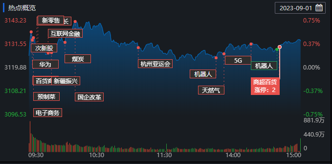 9月1日,A股三大指數(shù)漲跌不一,乳業(yè)、煤炭概念和杭州亞運(yùn)會(huì)等板塊全天走強(qiáng),核污染防治板塊持續(xù)回撤。有業(yè)內(nèi)人士認(rèn)為,政策對(duì)資本市場(chǎng)的方向較為清晰,短期市場(chǎng)可能仍將維持弱勢(shì)震蕩走勢(shì),而中長(zhǎng)期可能會(huì)呈現(xiàn)震蕩上行的趨勢(shì)。