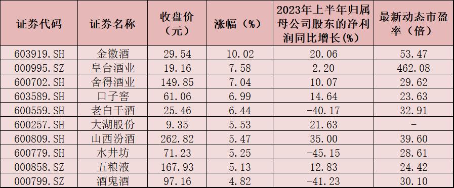 表:9月4日漲幅居前十的白酒概念股一覽