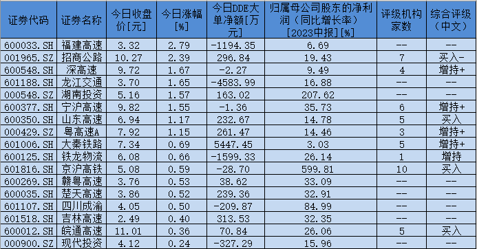 表:9月13日,同花順公路鐵路運(yùn)輸行業(yè)板塊實(shí)現(xiàn)上漲個(gè)股一覽