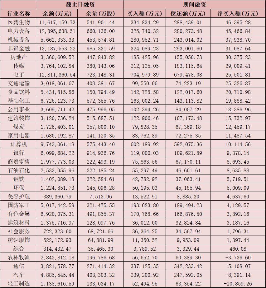 表:9月13日申萬一級行業(yè)兩融交易情況