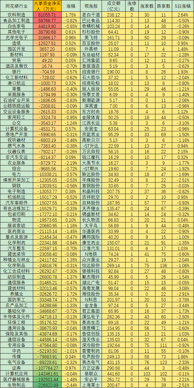 表:10月22日各同花順行業(yè)市場表現(xiàn)一覽