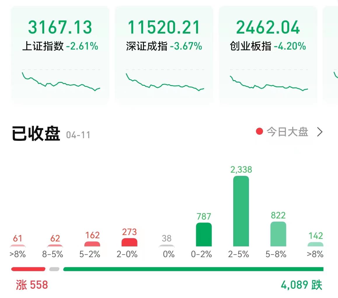 周一,A股三大指數(shù)集體跌超2%,截至收盤,上證指數(shù)跌2.61%報(bào)3167.13點(diǎn),深成指跌3.67%報(bào)11520.21點(diǎn),創(chuàng)業(yè)板指跌4.2%報(bào)2462.04點(diǎn);兩市合計(jì)成交9637億元,北向資金凈賣出57.62億元。