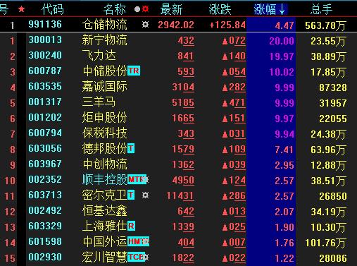 熱點(diǎn)二:倉儲(chǔ)物流漲逾4%7只概念股集體漲停