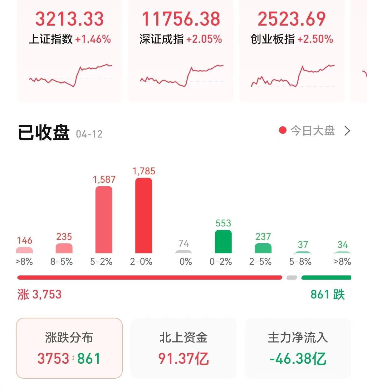 反抽普漲!周二(4月12日),A股三大指數(shù)全線飄紅,滬指重返3200點,創(chuàng)業(yè)板指也成功站上2500點。熱點方面,住宿餐飲、旅游酒店、白酒和券商等板塊紛紛走強,逾百股漲停。與此同時,北上資金大幅涌入超90億元,A股的反彈行情能否就此開啟呢?
