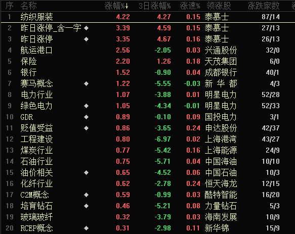 具體來看,截至4月22日11:30,紡織服裝行業(yè)漲幅達(dá)4.22%。