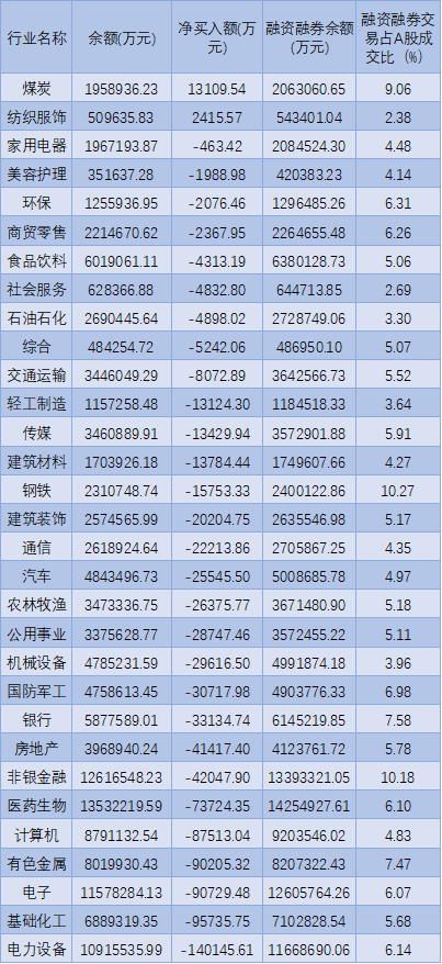 表:4月21日申萬一級行業(yè)兩融交易情況: