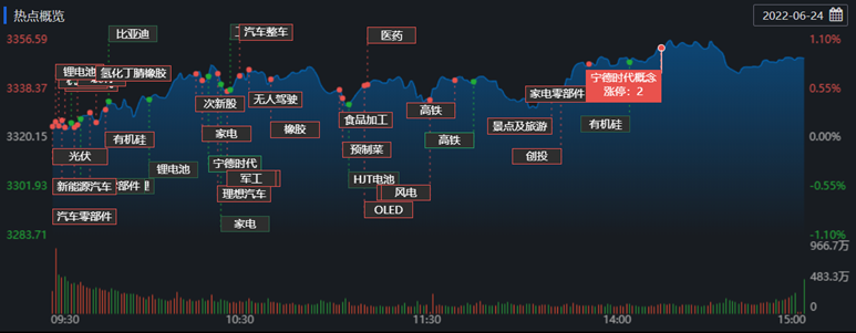 從熱點(diǎn)板塊看,景點(diǎn)及旅游板塊領(lǐng)漲,大漲7.6%;光伏板塊持續(xù)走強(qiáng),16只概念股漲停;HJT電池、酒店及餐飲、廚衛(wèi)電器、在線旅游、CRO概念、白色家電等板塊表現(xiàn)活躍;教育板塊領(lǐng)跌,煤炭開(kāi)采加工、貴金屬、中韓自貿(mào)區(qū)、油氣開(kāi)采及服務(wù)、銀行、水利等板塊跌幅居前。
