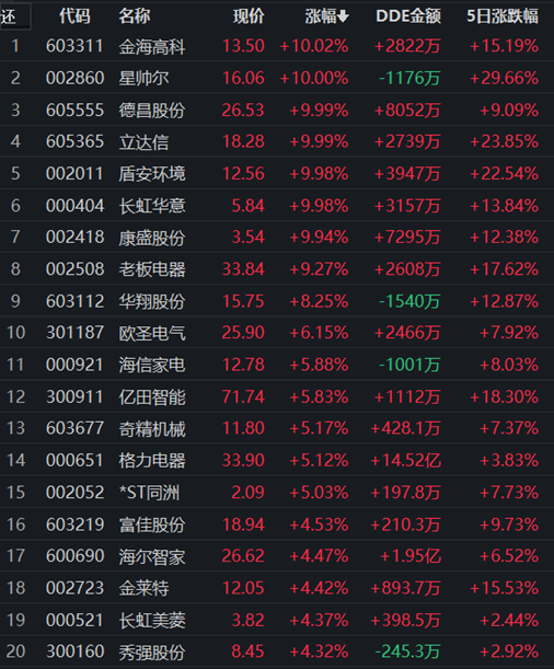 家用電器行業(yè)領(lǐng)漲