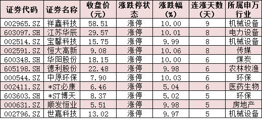 表:今日漲停且連漲5日以上的個股情況: