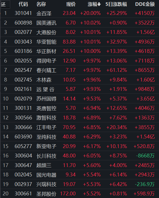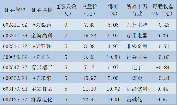 表:連續(xù)上漲5天且今日收盤漲停股一覽
