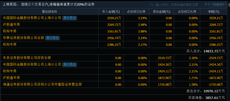 賽騰股份7月22日登上龍虎榜,數(shù)據(jù)顯示,買賣前五大營業(yè)部買賣凈差為3857.61萬元,其中,中國國際金融股份有限公司上海分公司買入3559.21萬元;滬股通專用買入3269.72萬元。