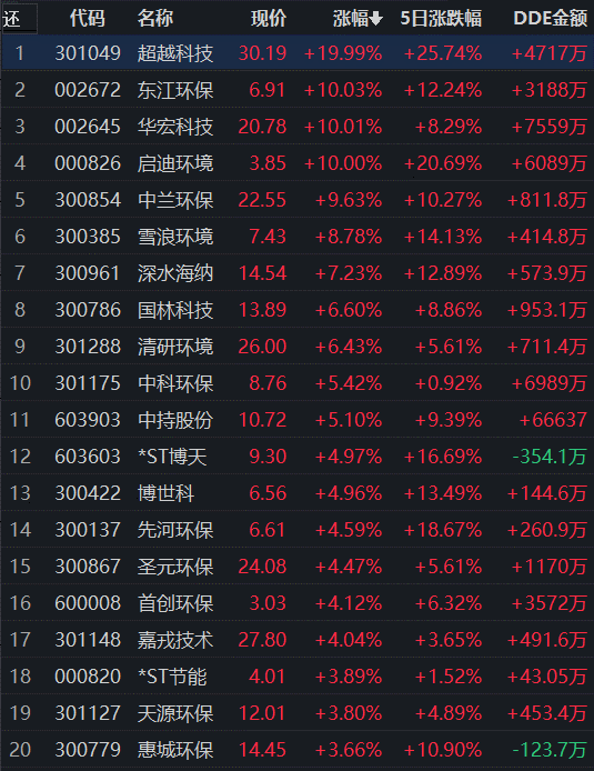 環(huán)保行業(yè)領(lǐng)漲