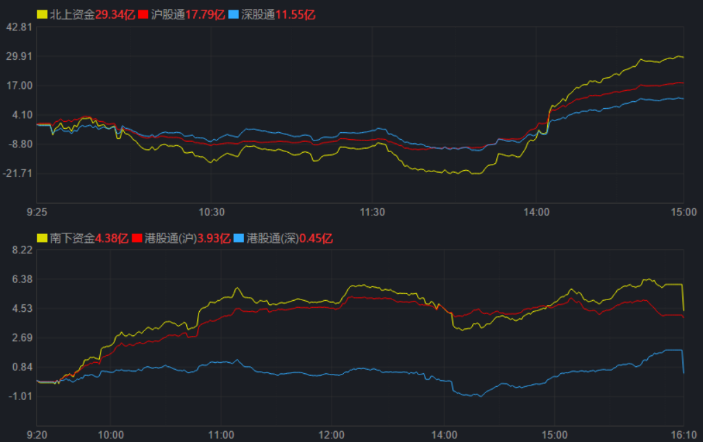 今日A股三大股指早盤震蕩紅盤,盤午后繼續(xù)震蕩走高,滬指收復(fù)3200點(diǎn)整數(shù)關(guān)口,三大指數(shù)均漲超1%,深市略強(qiáng)。截至收盤,上證指數(shù)漲1.19%報(bào)3227.03點(diǎn),深證成指漲1.69%報(bào)12269.21點(diǎn),創(chuàng)業(yè)板指漲1.62%報(bào)2683.60點(diǎn);兩市合計(jì)成交額達(dá)9954億元,北向資金凈買入29.34億元??傮w來看,個(gè)股漲多跌少。
