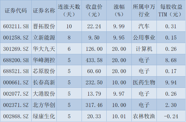 表:連續(xù)上漲5天且今日收盤漲停股一覽