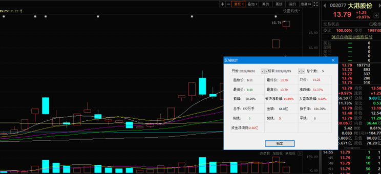 8月5日,大港股份漲9.97%,報(bào)13.79元。該股自8月1日以來,截至8月5日已連續(xù)5個(gè)交易日上漲,累計(jì)漲幅達(dá)51.37%,最近的4個(gè)交易日實(shí)現(xiàn)連續(xù)漲停。最新A股總市值達(dá)80.03億元,A股流通市值78.20億元。