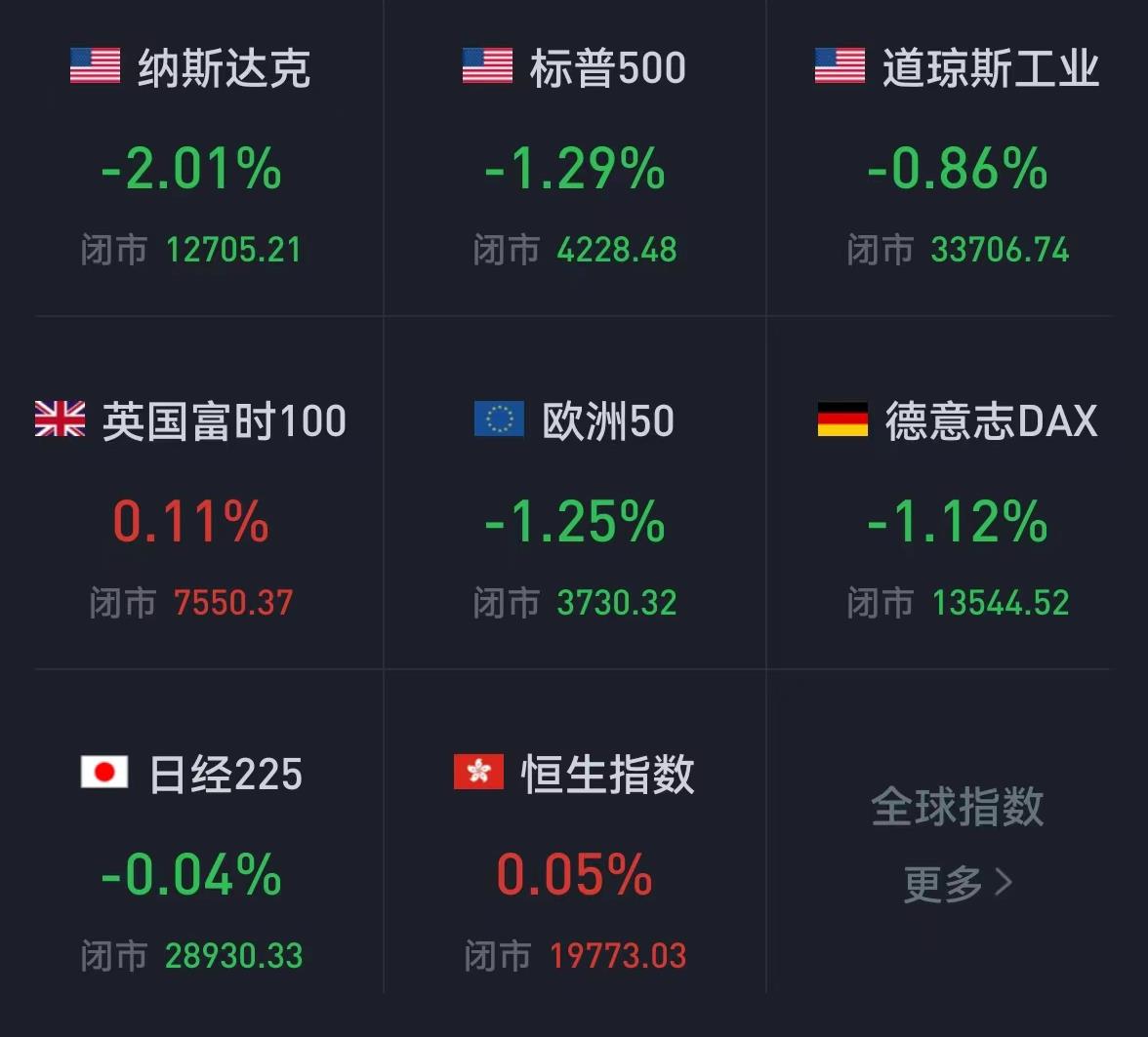 周五,美國(guó)三大股指全線收跌,道指跌0.86%報(bào)33706.74點(diǎn),標(biāo)普500指數(shù)跌1.29%報(bào)4228.48點(diǎn),納指跌2.01%報(bào)12705.22點(diǎn)。本周,道指跌0.16%,標(biāo)普500指數(shù)跌1.21%,納指跌2.62%。