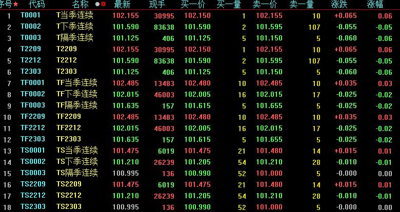 周五,國(guó)債期貨震蕩走弱,全線小幅收跌,10年期主力合約跌0.05%,5年期主力合約跌0.02%,2年期主力合約跌0.01%。全周來(lái)看,國(guó)債期貨全線大幅上漲,10年期主力合約漲0.36%,5年期主力合約漲0.11%,2年期主力合約跌0.05%。