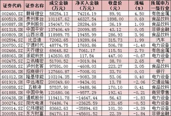 值得關注的是,8月26日,北向資金逆市呈現(xiàn)凈流入態(tài)勢,凈買入金額達51.51億元。從前十大成交活躍股來看,8月26日,贛鋒鋰業(yè)、貴州茅臺、伊利股份、中國平安等4只個股,北向資金凈買入金額均超2億元。
