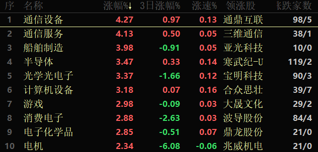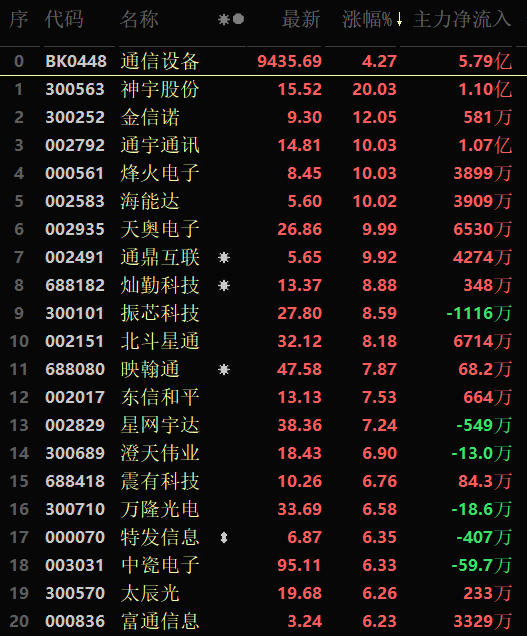 三大指數(shù)回升近九成行業(yè)上漲 通信設(shè)備飆漲4.27%