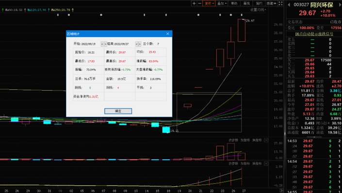 滬深交易所2022年9月27日公布的交易公開信息顯示,同興環(huán)保因連續(xù)三個交易日內(nèi),漲幅偏離值累計達20%而登上龍虎榜。