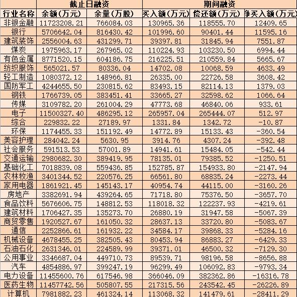 表:10月11日申萬一級行業(yè)兩融交易情況: