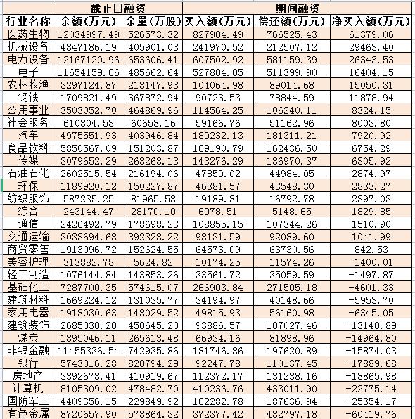 表:11月10日申萬一級(jí)行業(yè)兩融交易情況: