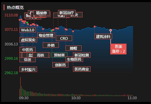 熱點(diǎn)板塊方面,截至11月11日上午收盤,CRO概念、Web3概念、新冠藥物等板塊漲幅居前。另外,民用航空、冰雪產(chǎn)業(yè)等板塊跌幅居前。