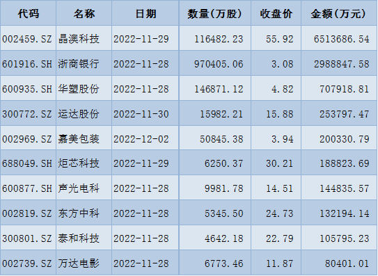 表:下周解禁市值前十位(本周收盤價(jià)計(jì)算)