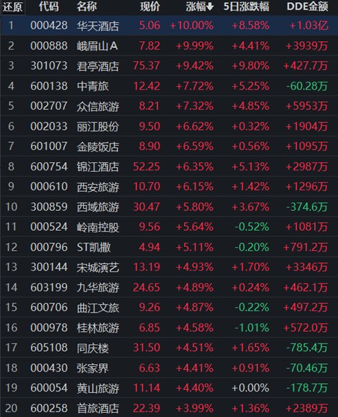 標(biāo)的方面,東莞證券表示,國內(nèi)防疫工作優(yōu)化逐步推進(jìn),旅游出行信心有望逐漸修復(fù)。國際航線客運(yùn)力同比增長近九成,出入境限制逐漸松動(dòng),推薦優(yōu)先受益于出入境限制放松的出境游龍頭眾信旅游(002707);機(jī)場免稅業(yè)務(wù)有望復(fù)蘇的免稅龍頭中國中免(601888);建議布局業(yè)績彈性較大的景區(qū)個(gè)股云南旅游(002059)、天目湖(603136)、宋城演藝(300144);建議關(guān)注具有餐飲宴會(huì)+預(yù)制菜成長屬性的同慶樓(605108)等。