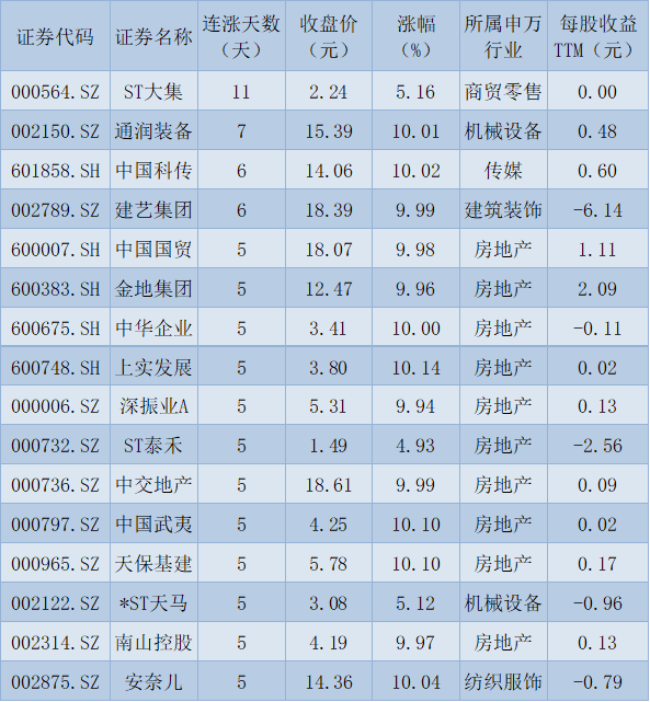 表:連續(xù)上漲5天且今日收盤漲停股一覽